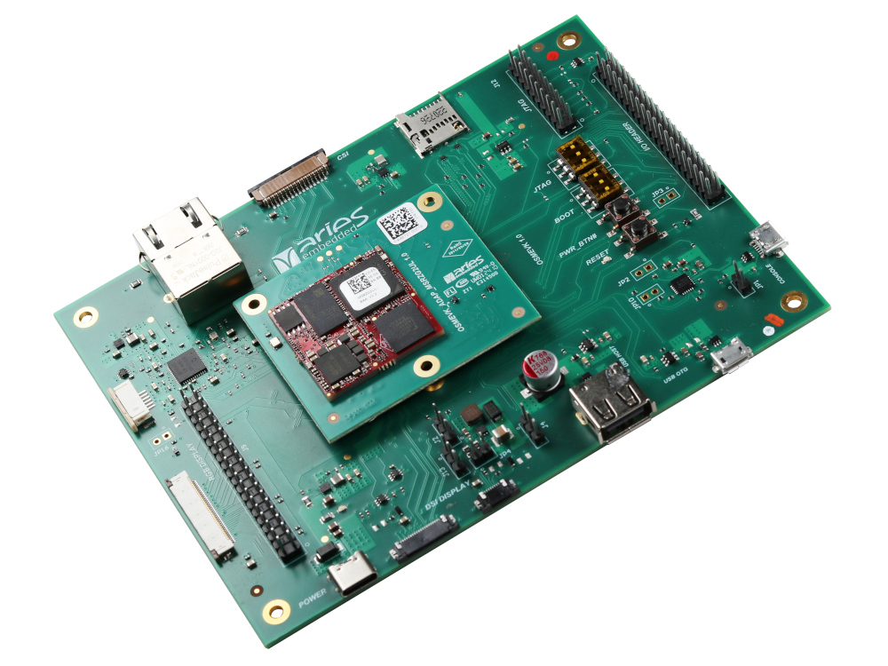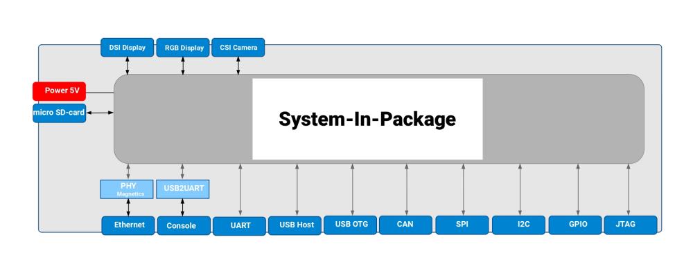 - SoM, hosting all memory and logic interfaces