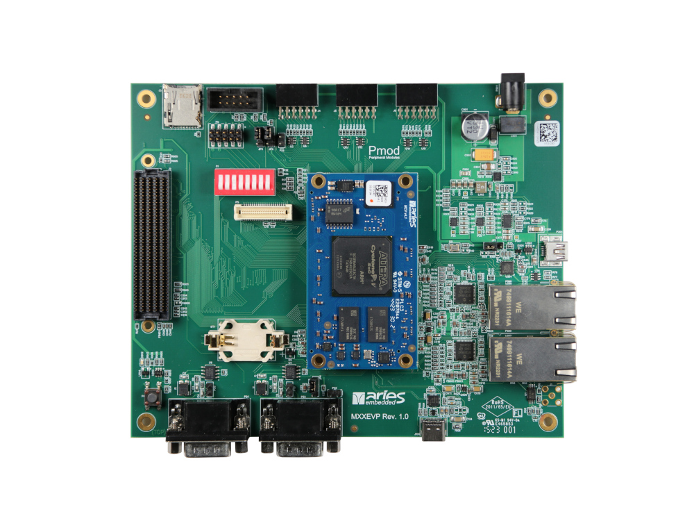 The MCVEVP supports a quick start-up of SoC-FPGA projects and can easily be used as a fast-prototype platform.